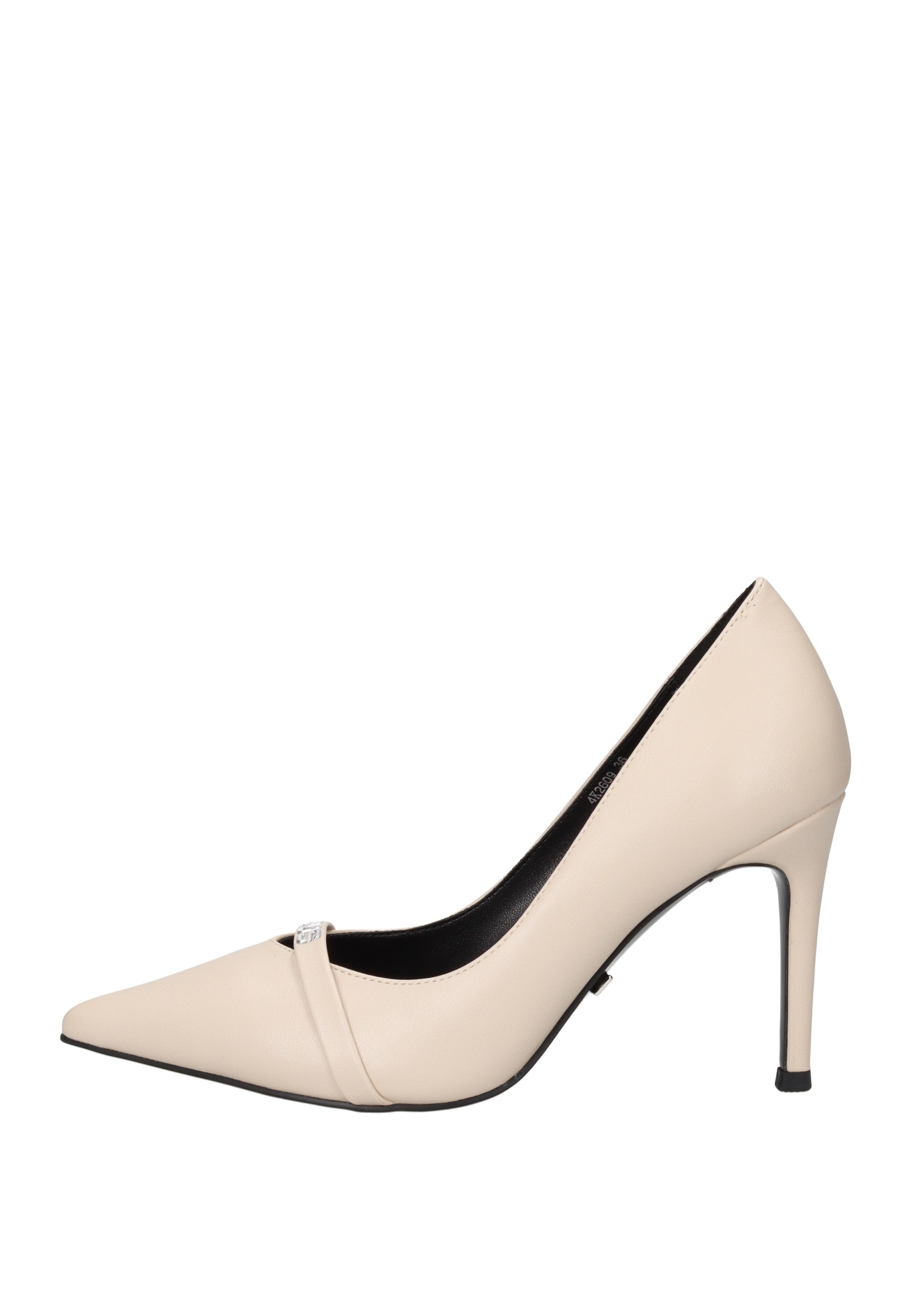Elegante decolleté Armonia realizzata in ecopelle, caratterizzata da una fascia frontale con lettering distintivo. Il sottopiede imbottito in pelle garantisce comfort durante la giornata, mentre il fondo in gomma assicura stabilità e durata. Tacco alto da 11 cm che valorizza la silhouette con stile e raffinatezza.