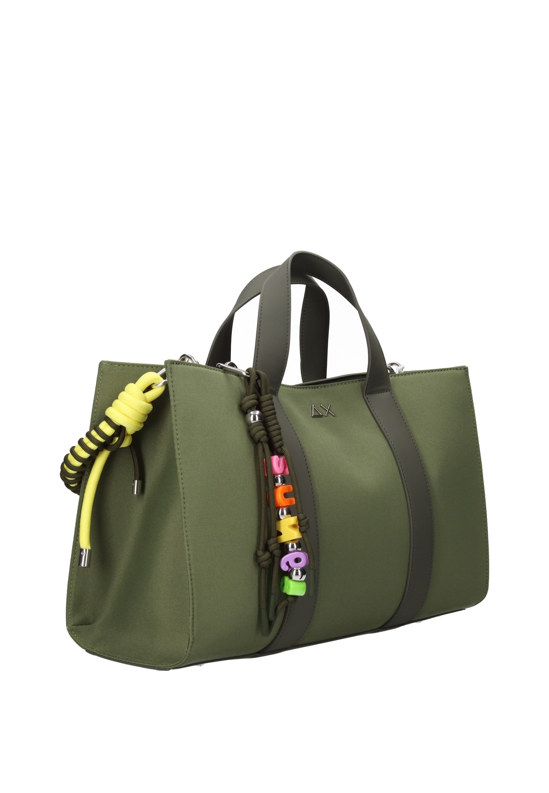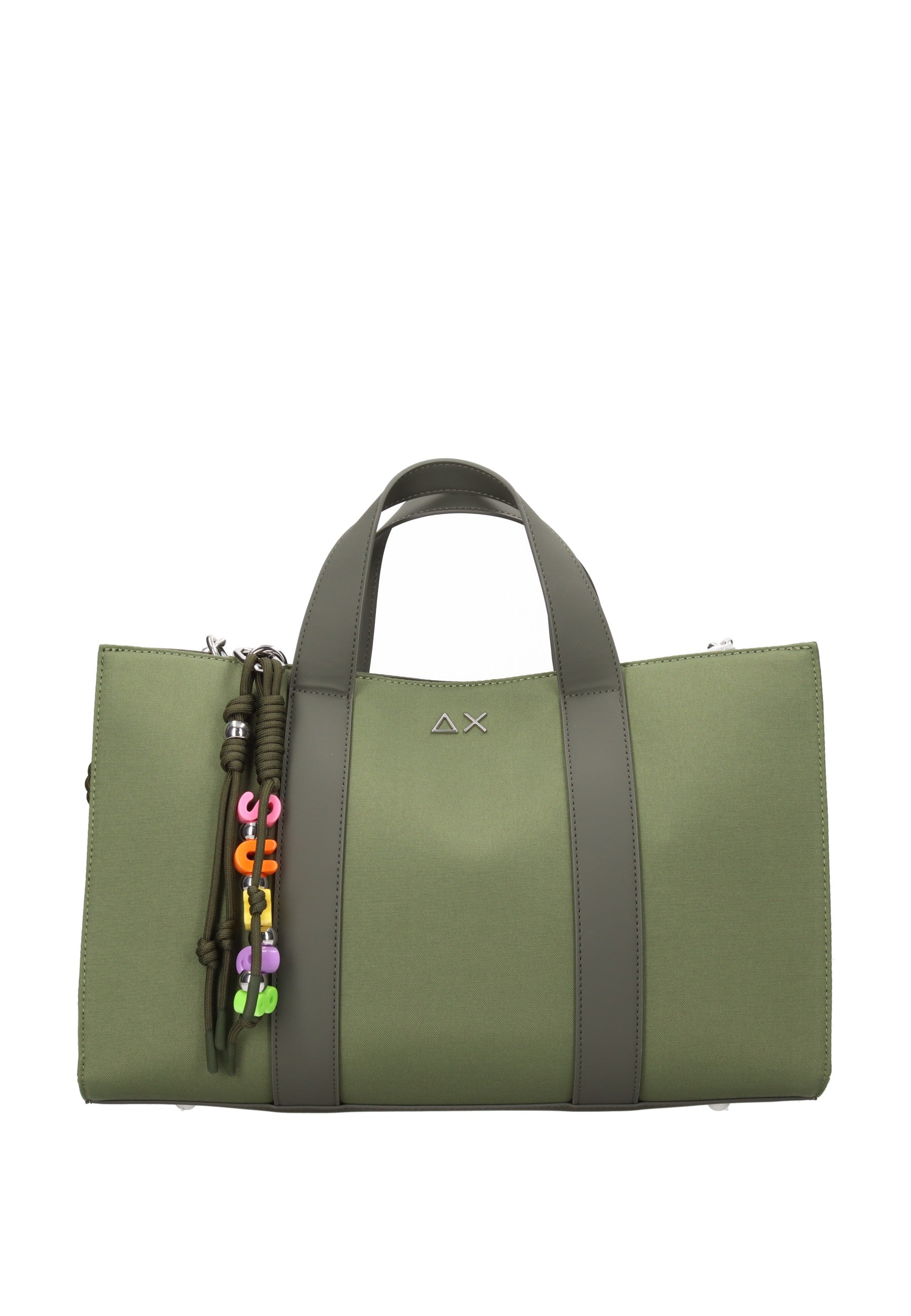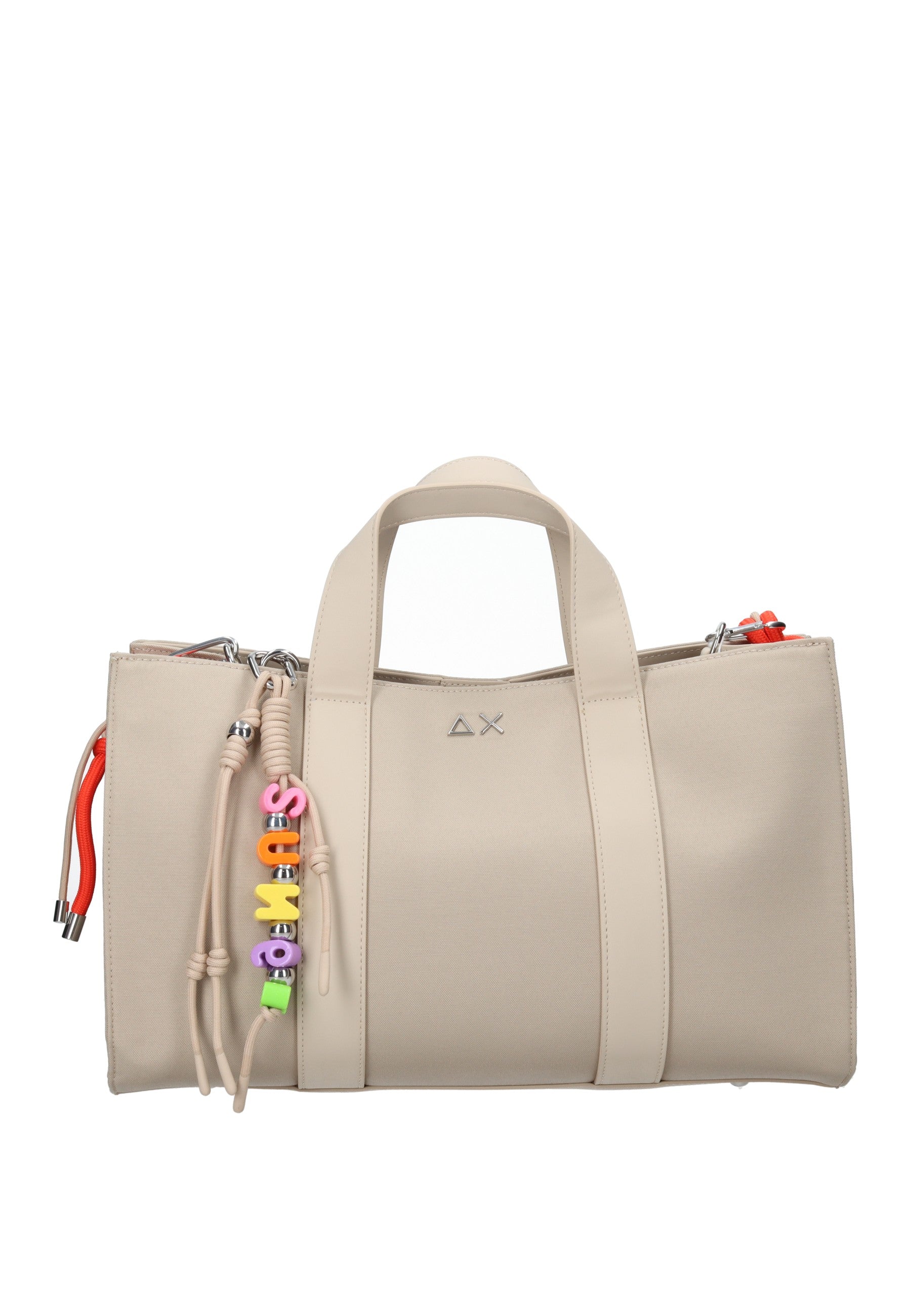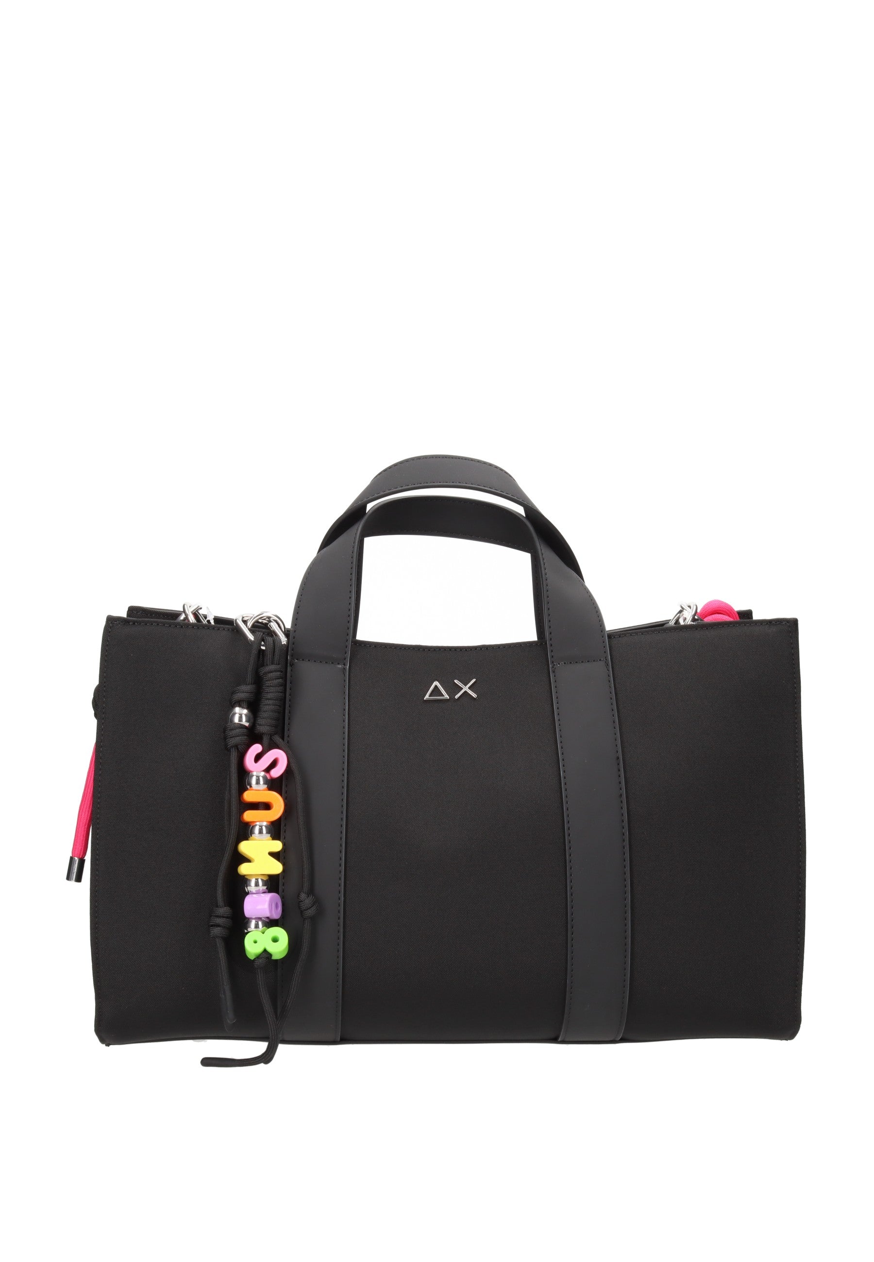Borsa a mano Midi Bar Everyday SUN68 in tessuto resistente, perfetta per l'uso quotidiano. Caratterizzata da chiusura magnetica sicura e pratica sacca interna con coulisse per organizzare gli effetti personali. Dotata di tracolla regolabile per il trasporto a spalla e impreziosita da charm colorati che aggiungono un tocco di personalità. Dimensioni generose (38x26x15 cm) ideali per contenere documenti, portafoglio e accessori essenziali. Un accessorio versatile che combina funzionalità e stile contemporaneo.